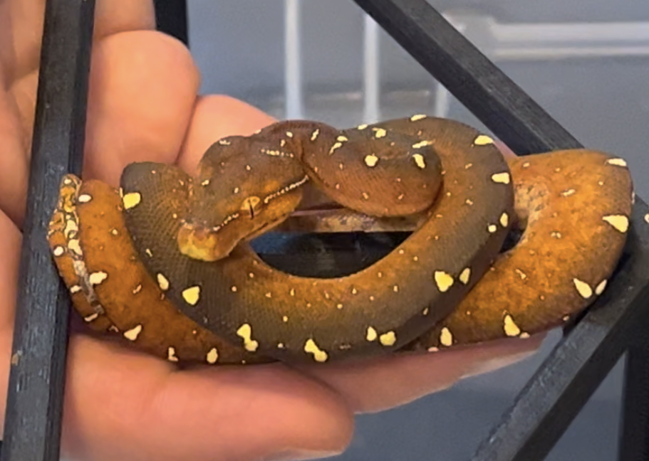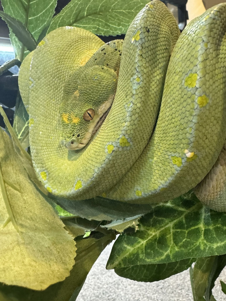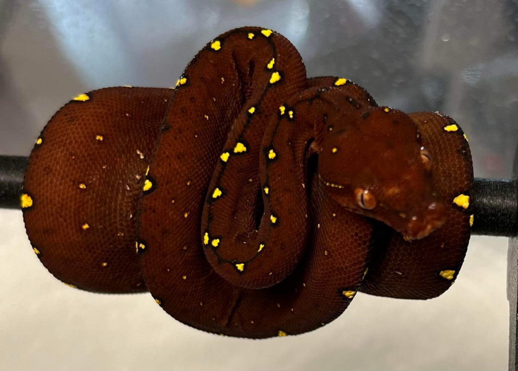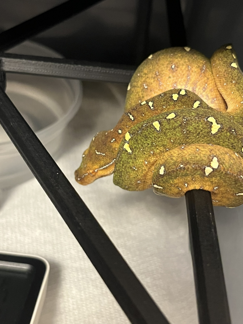 Sophia maintains a classic Morelia demeanor: alert, deliberate, and confident on the perch. She’s feeding consistently and growing into a female we’re excited to feature in future pairings aimed at enhancing both color and complexity.
