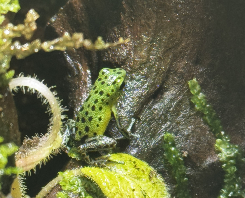 Our Punta Laurel group is a carefully maintained trio of Oophaga pumilio – a striking small-bodied dart frog species with bold coloration, strong site fidelity, and parental care behavior that makes them a favorite among advanced keepers and frogroom purists.